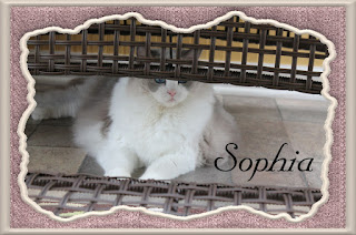 Meet Sophia..she is Sophie's full sister from a later litter. We call Sophie, "Kitty Moku" so the similar name isn't a problem. Sophia is a Grand Champion and she is 1 and 1/2 years old.